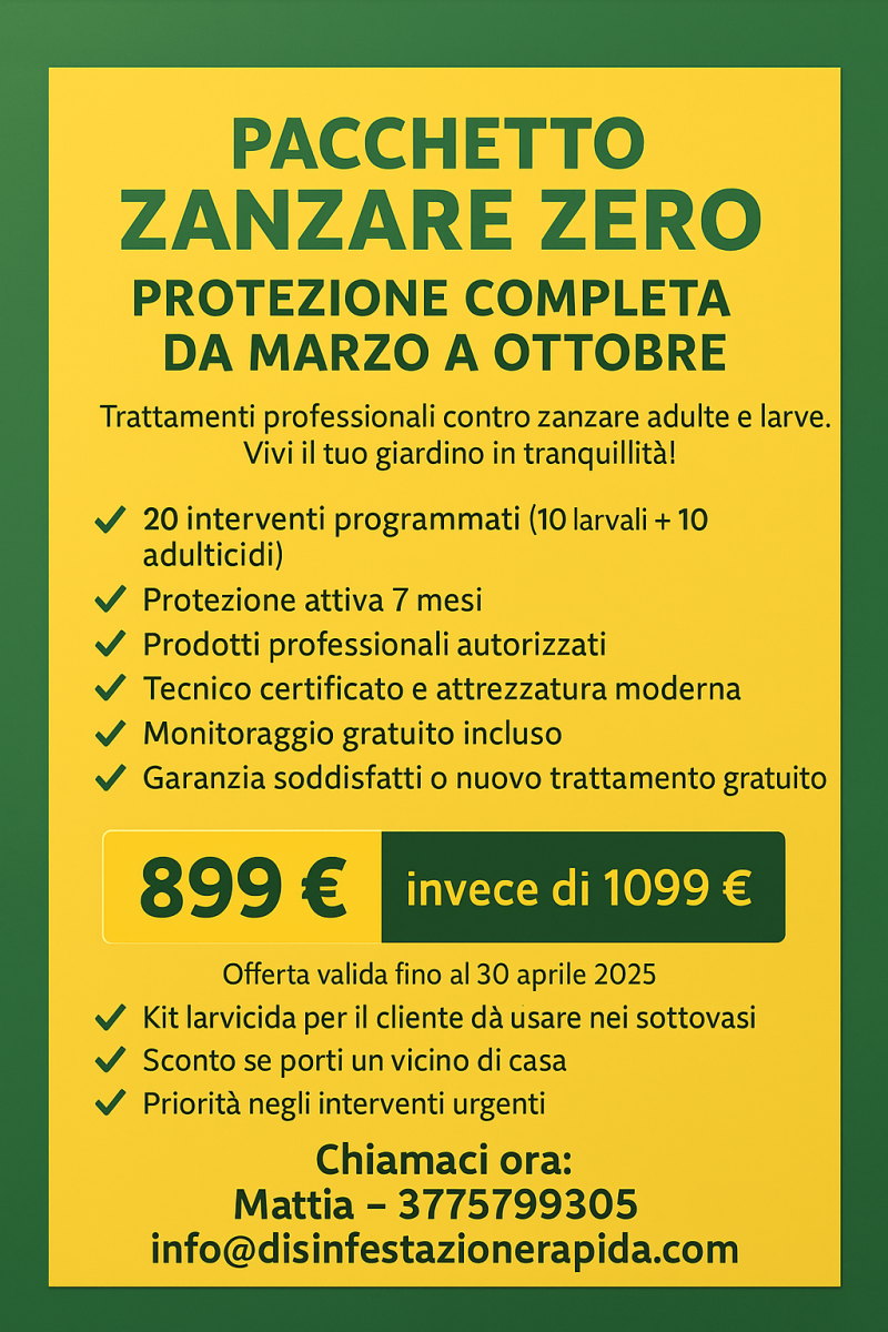 Durante l’anno proponiamo diverse promozioni dedicate alla disinfestazione, derattizzazione, pulizia canne fumarie e molto altro. Torna spesso a visitare questa sezione per non perdere le ultime novità!